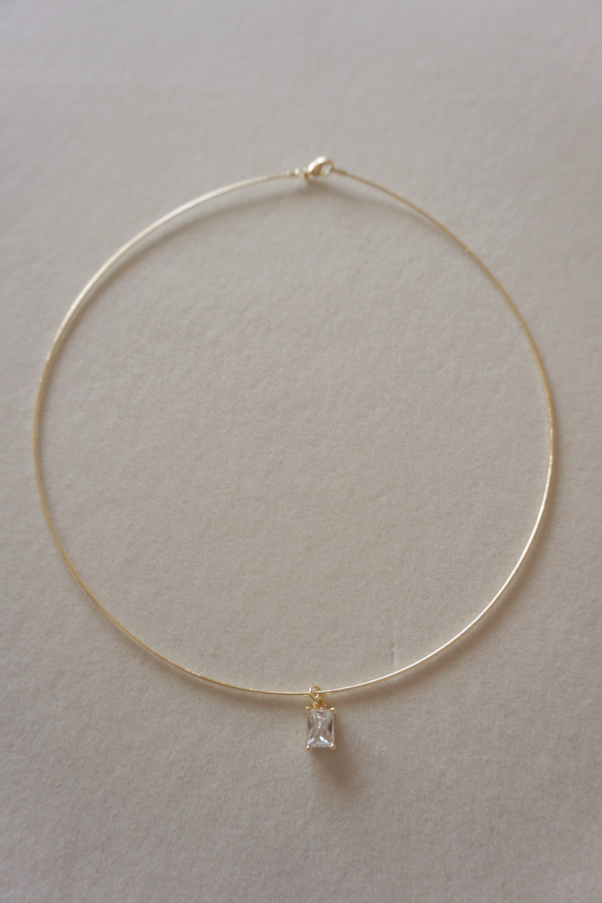 Gold filled, structured collarbone necklace with a cubic zirconia charm.