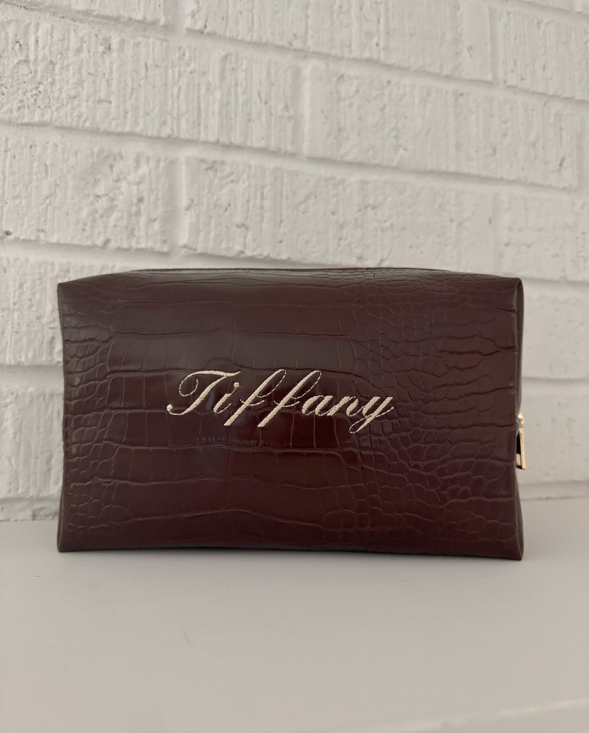 Faux Crocodile Cosmetic Pouch with Zipper Closure