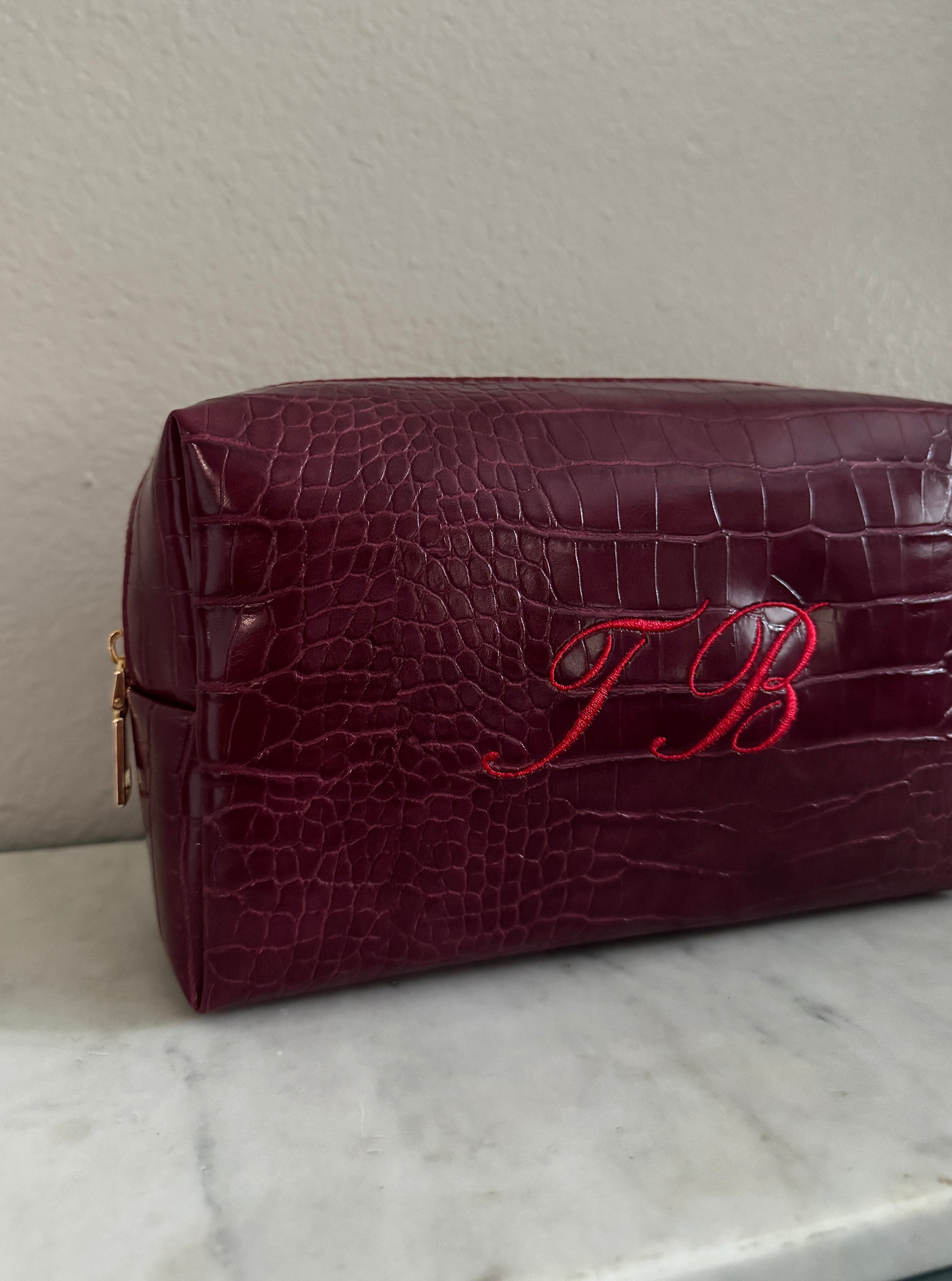 Red Script Croc Pouch